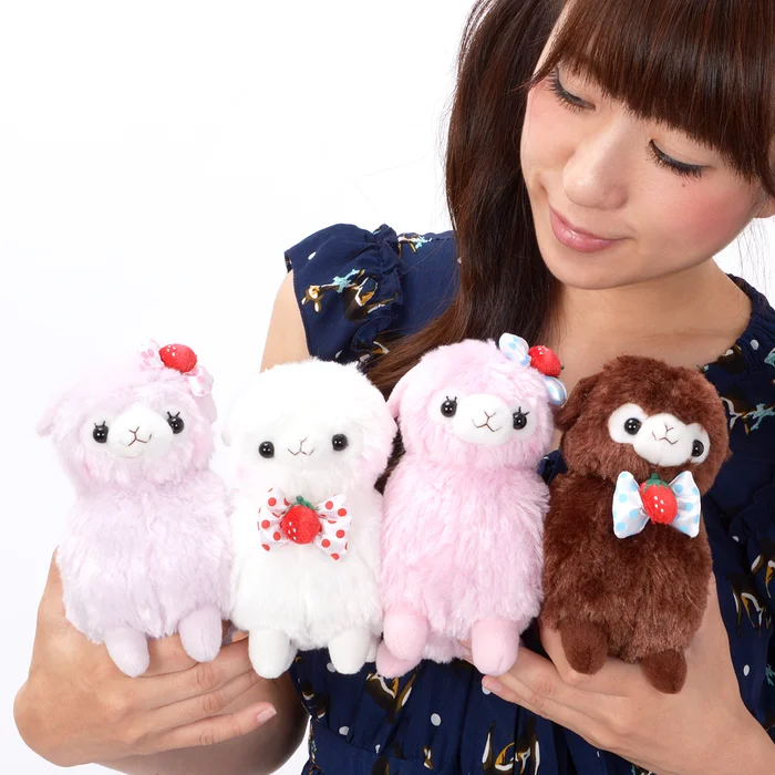 You might think that Alpacasso (Arpakasso) are always lovely, and you wouldn’t be wrong, but these Alpacasso Kids plushies have been selected for their especially high “loveliness” quotient. The Alpacasso Kids are plumper and rounder than their grown up varieties with cute chibi-style look, and these ones are all wearing adorable strawberry themed bows so they really do look “lovely.”